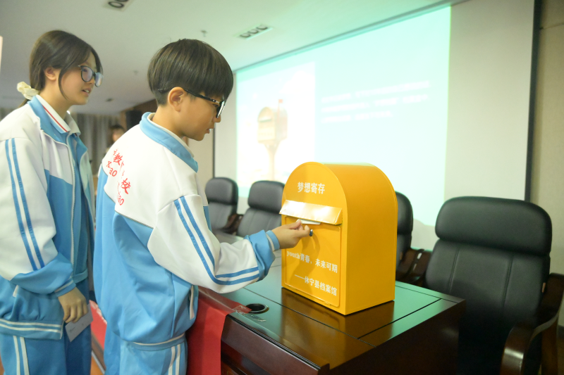 此外,活动特别策划“梦想寄存”环节。同学们在特制明信片上写下青春梦想,这些“梦想信件”由档案馆妥善封存,将在约定时间共同开启,以档案见证青少年的成长。