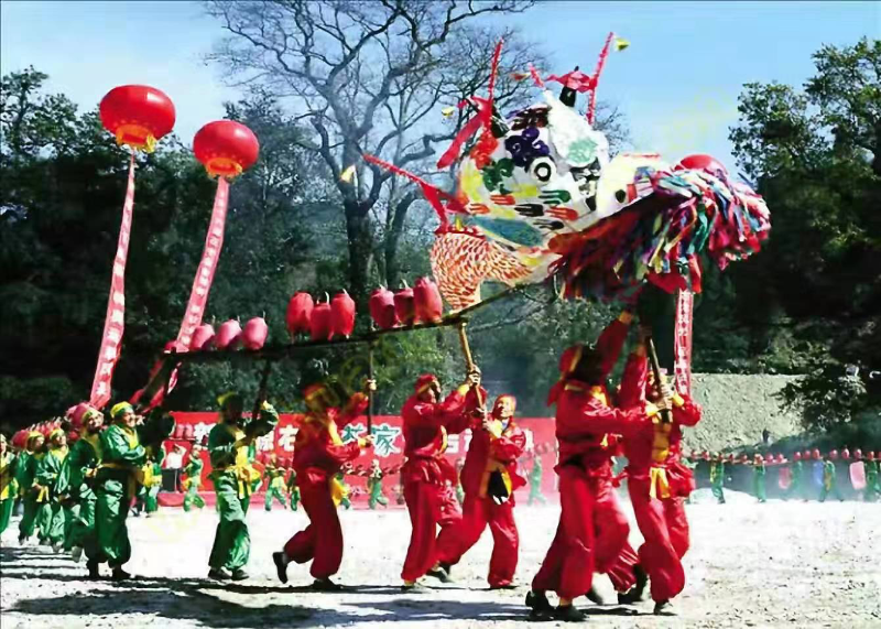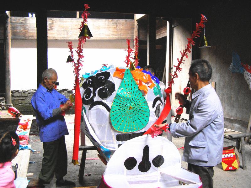 每年正月十五的舞龙,至少提前3-4天就开始准备。龙头、龙尾由村里聘请老师傅制作,骨架以竹子编织,外面糊的纸每年更换;龙身则由各家各户到村委会领材料制作,每一张板凳上固定3个灯笼,灯笼骨架同样为竹制,还需另外制作骨架报贴。龙头重70斤,舞龙头需4人合力;龙尾重30斤,舞龙尾需2人,且龙头、龙尾的表演者由村两委负责人即舞龙总指挥张光武(旧时由族长)指定身体素质好、服从指挥的人担任。